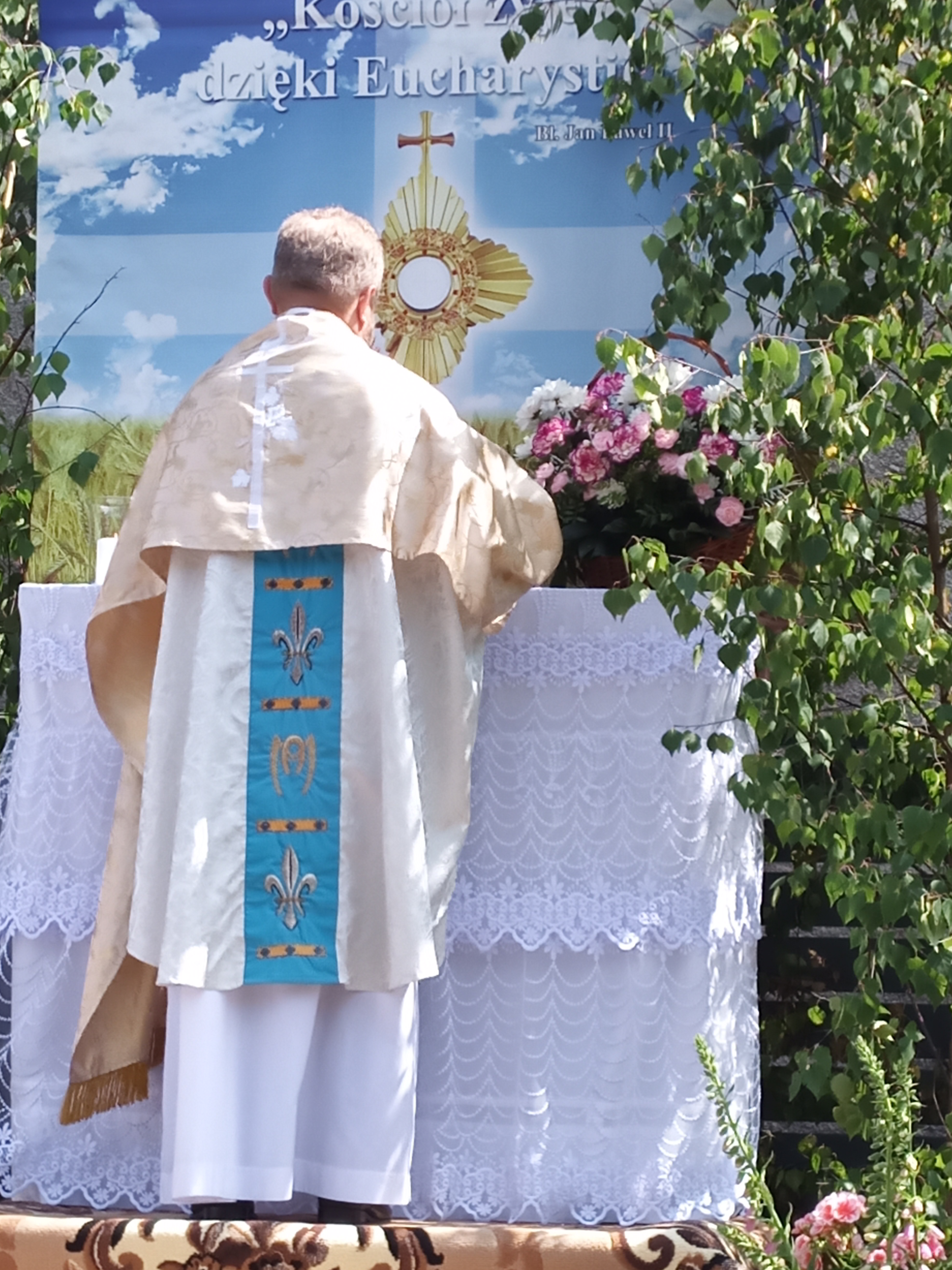 8 czerwca Uroczystość Najświętszego Ciała i Krwi (Boże Ciało). Uroczystą Mszę Świętą odprawili ksiądz Proboszcz i ksiądz Mirosław Lewandowski.