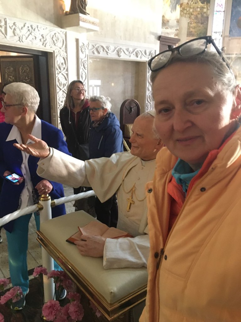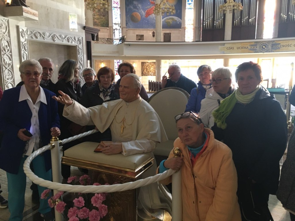 Wieczorem uczestniczyliśmy we mszy świętej w Sanktuarium Matki Bożej Gwiazdy Nowej Ewangelizacji i Świętego Jana Pawła II. Świątynia ta nie tyle jest okazała ile w niej jest pamiątek dotyczących historii naszego kraju.