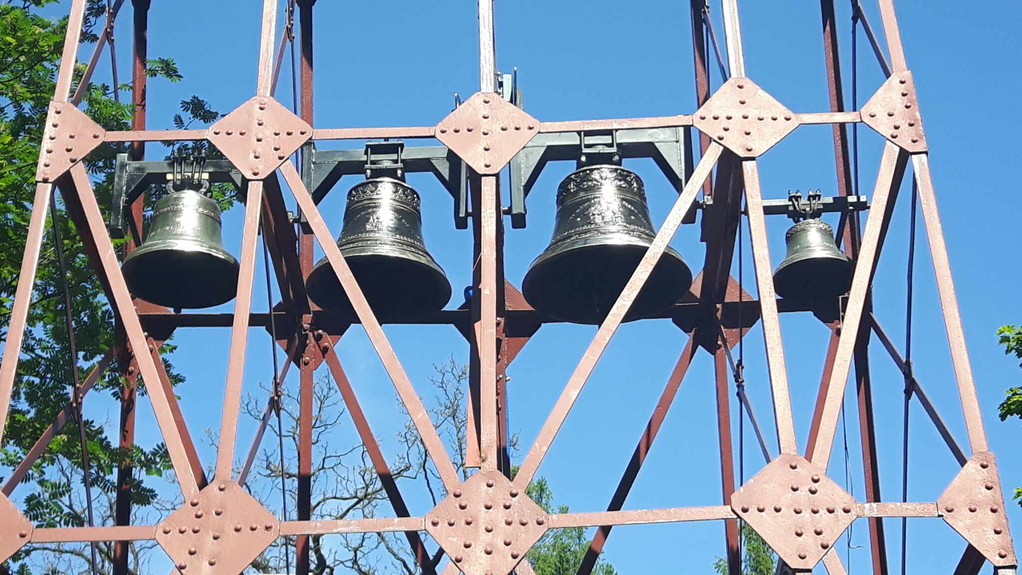 Zostały wszystkie odnowione. Teraz wyglądają przepięknie. Dwa dzwony są teraz zasilane elektrycznie, pozostałe dwa są nadal ręcznie uruchamiane.
